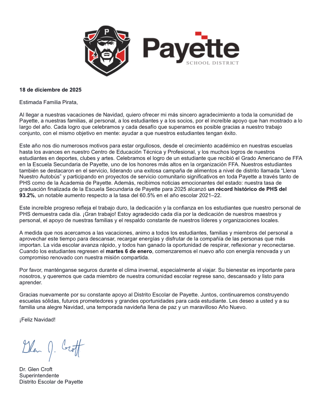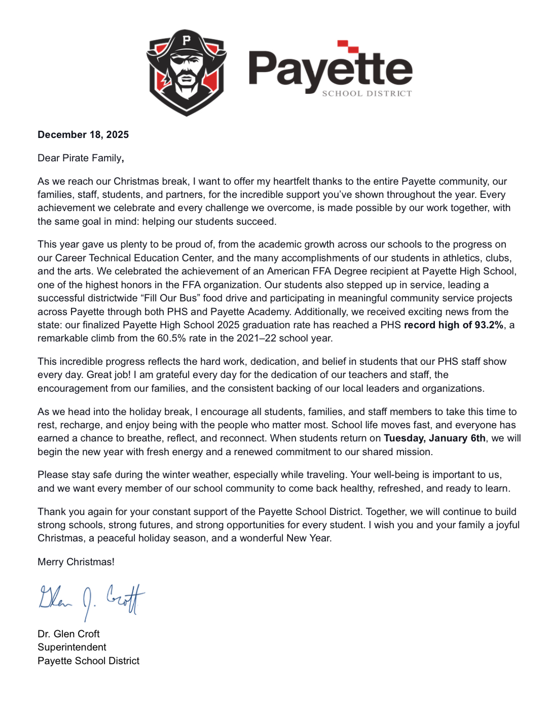 Letter from the Superintendent
